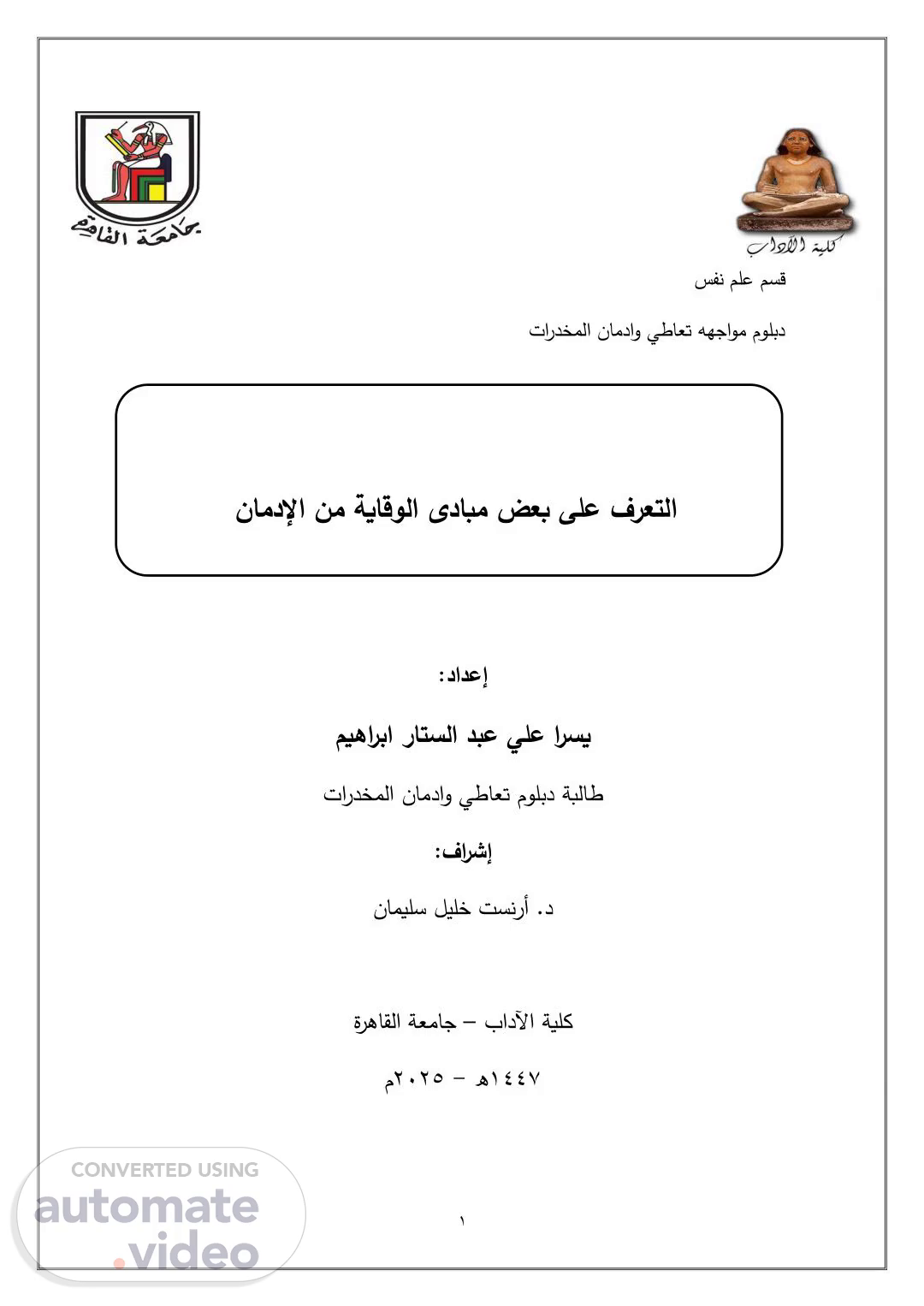 1 سفن ملع مسق تاردخملا نامداو يطاعت ههجاوم مولبد دابم ضعب ىلع فرعتلا ةياقولا ى نامدلإا نم إ:دادع ميهاربا راتسلا دبع يلع ارسي ط ةبلاتاردخملا نامداو يطاعت مولبد :فارشإ .د ليلخ تسنرأناميلس بادلآا ةيلك– ةرهاقلا ةعماج 1447ه - 2025 م.