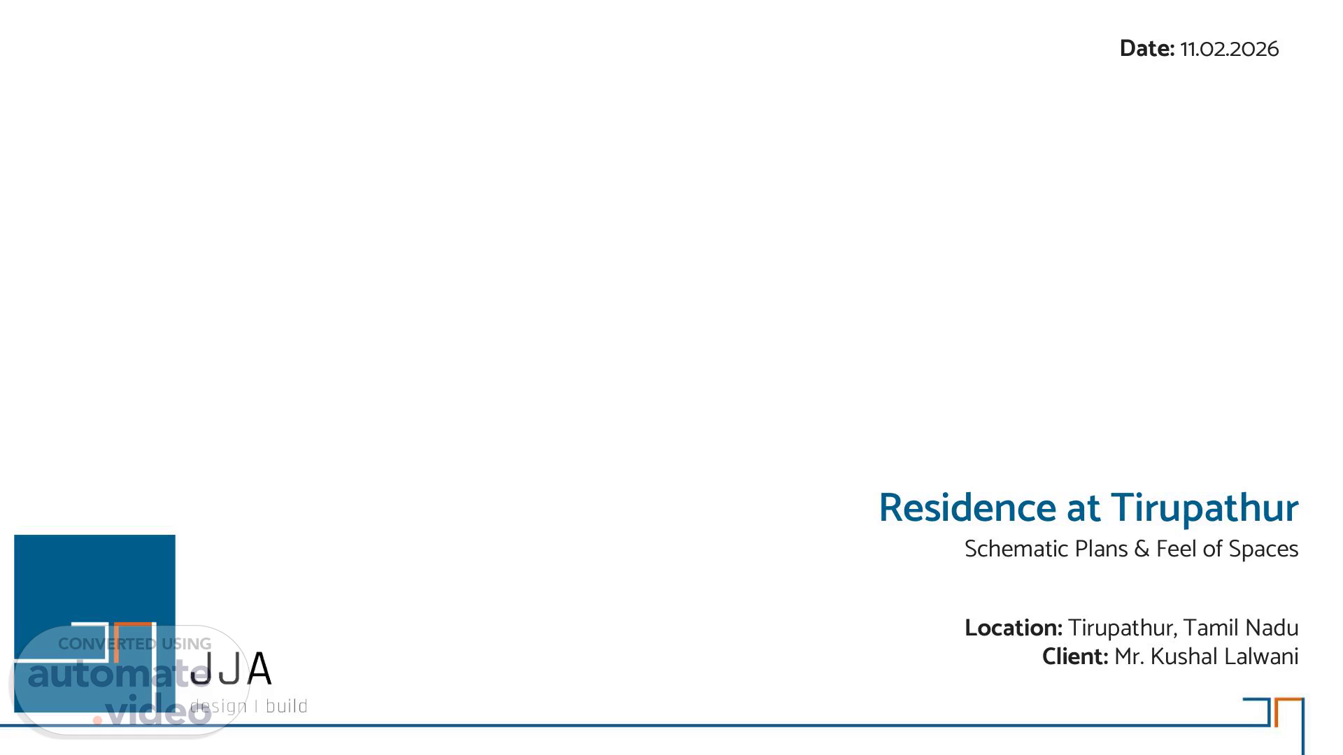 [Audio] Date: 11.02.2026 Residence at Tirupathur Schematic Plans & Feel of Spaces Location: Tirupathur, Tamil Nadu Client: Mr. Kushal Lalwani.