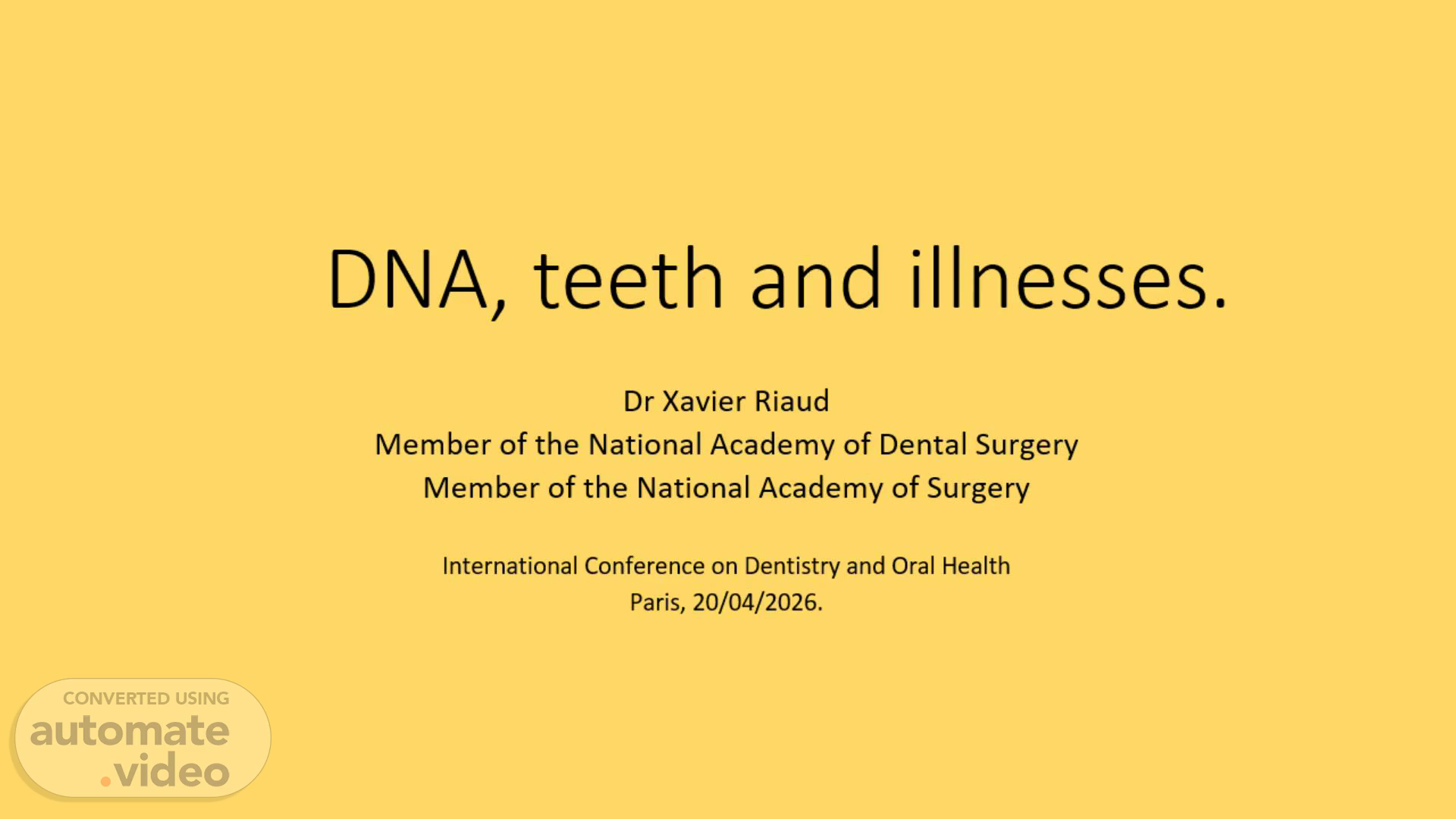 [Audio] DNA, teeth and illnesses. Dr Xavier Riaud Member of the National Academy of Dental Surgery Member of the National Academy of Surgery International Conference on Dentistry and Oral Health Paris, 20/04/2026..